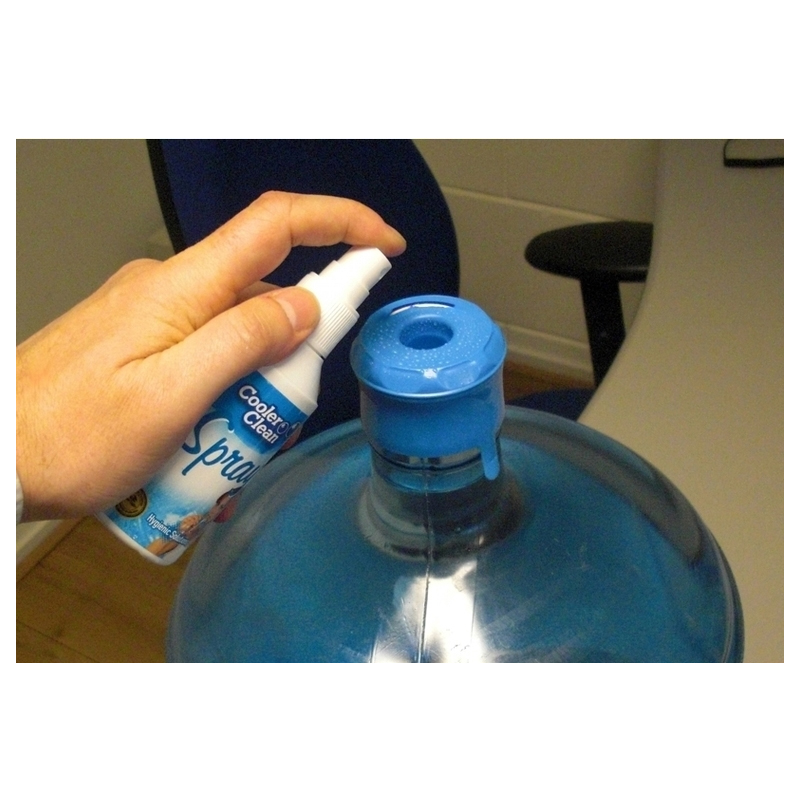 Voor een goede hygiëne van de watercooler is het belangrijk dat de cooler vrij blijft van bacteriën. Gebruik daarom bij elke nieuwe fles de Cooler Clean Spray en spuit zowel de pin van de cooler als de dop van de fles goed in. Hierdoor voorkomt u dat de cooler van buitenaf wordt verontreinigd met bacteriënof virussen.